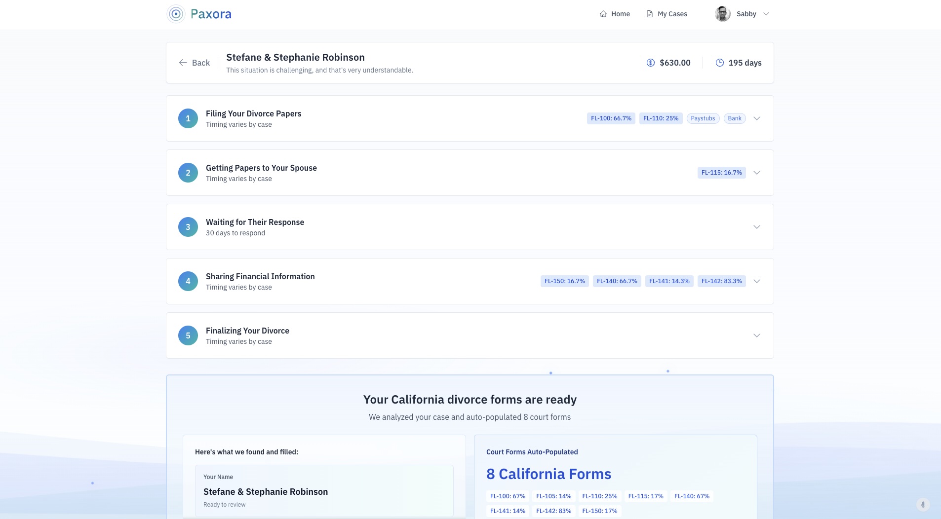 Other services make you fill out endless questionnaires. Your income. Your expenses. Your assets. Then you get to the court forms and answer everything again.